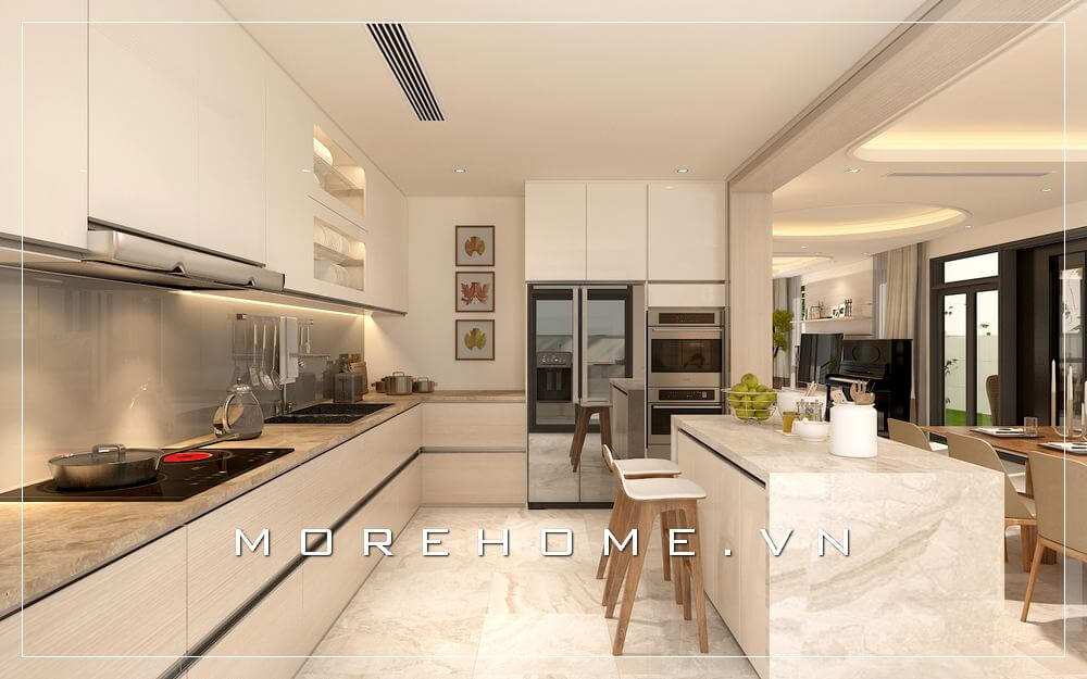 Hiểu được những điều khách hàng mong đợi, Morehome mang tới những mẫu thiết kế phòng bếp đẹp tiện nghi và sang trọng. Chắc chắn sẽ không khiến gia chủ thất vọng bởi vẻ đẹp tinh tế của từng mẫu thoát ra từ những chi tiết nhỏ nhất. Hãy cùng chúng tôi tham khảo và chọn lựa mẫu bố trí nội thất nhà bếp khoa học dưới bài viết này bạn nhé!
